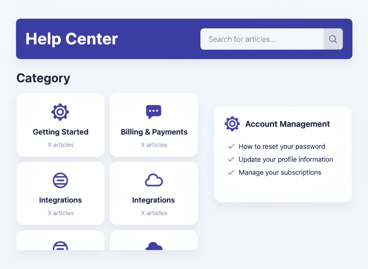 Brändätty, haettava tietopankki. Tekoäly ehdottaa artikkeleita vierailijoille ennen tiketin avaamista. Kategoriat, haku ja SEO — kaikki hallittavissa hallintakojelaudastasi.